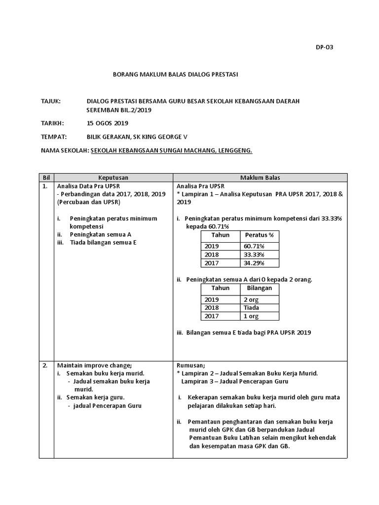 Contoh Laporan Dialog Prestasi Pra Upsr Pdf